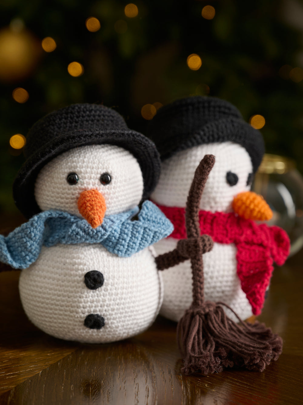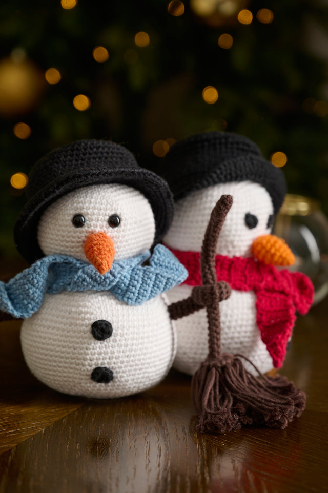 Snemanden Simon er et fint stykke julepynt, som tilmed er hyggeligt at lave, da der både skal laves gulerodsnæse, halstørklæde, kviste til arme og en kost. Snemanden måler ca. 15 cm i højden og hækles i klassisk bomuldsgarn, Mayflower Cotton 8/4. Snemanden er designet af Josefine fra Min Kreative Verden.