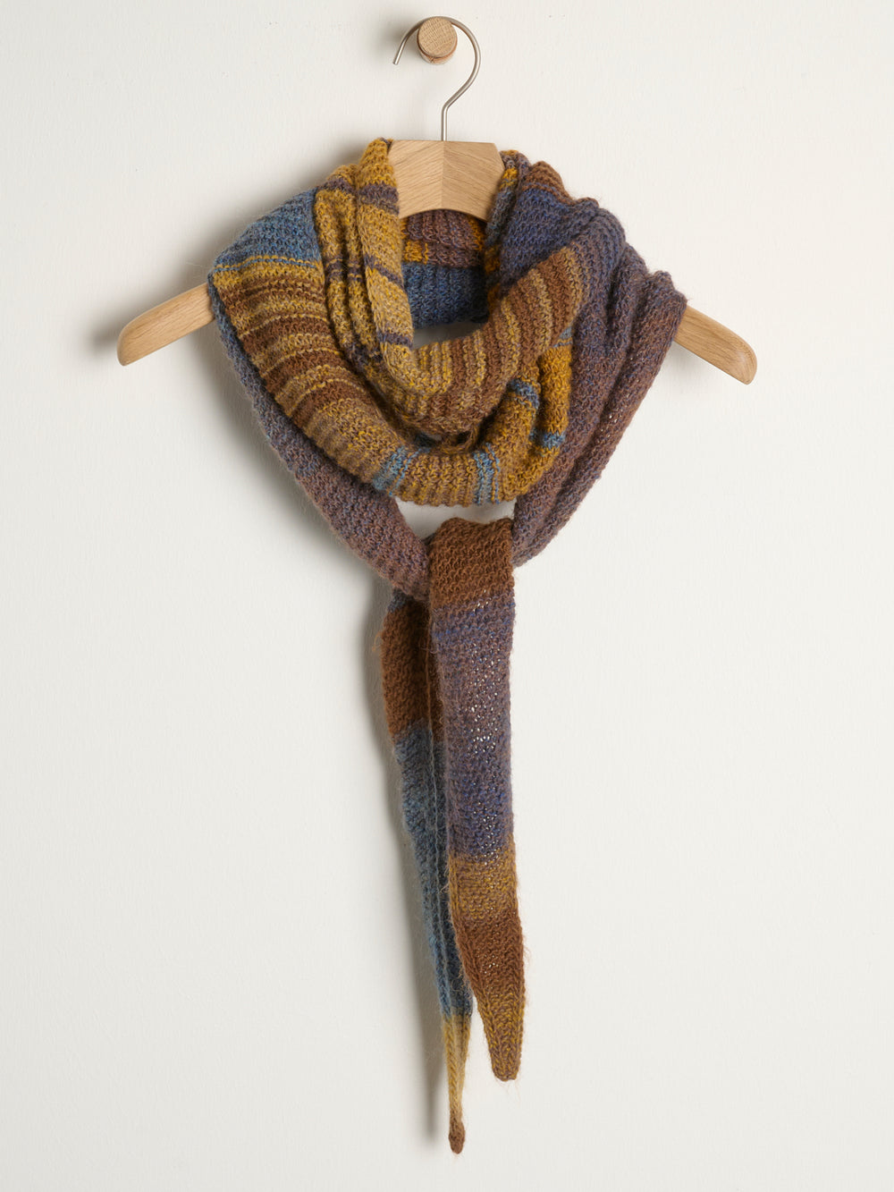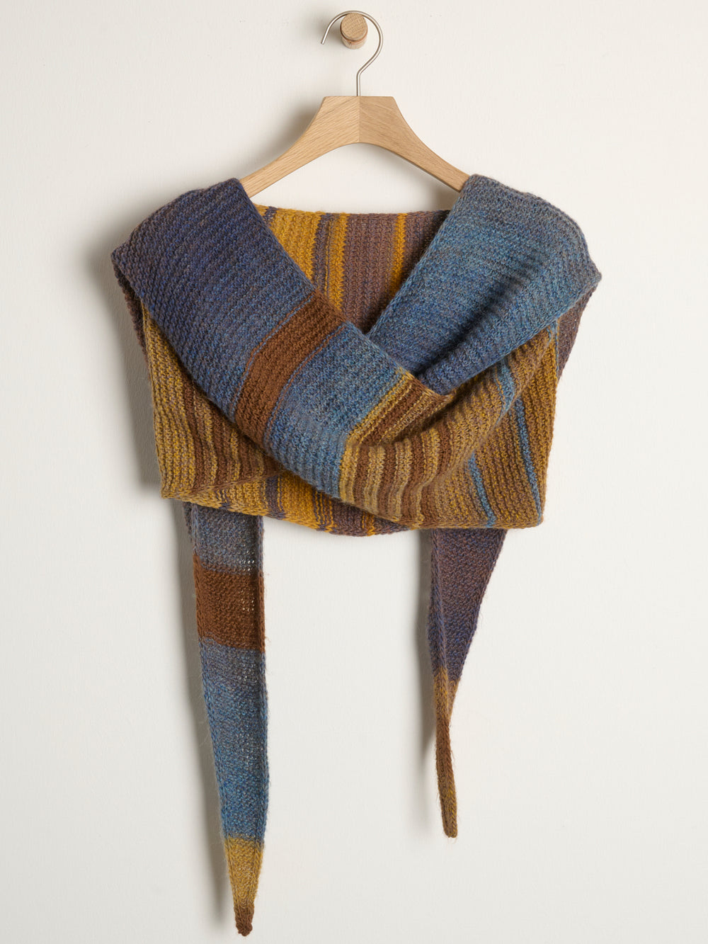 Sjalet kan også strikkes i en ensfarvet version ved brug af Mayflower Taormina Shade, ligesom du også kan bruge Mayflower Taormina Flow, som også har et flot og mere blødt farveskifte. Alle tre garner har den samme fibersammensætning med bl.a. alpaka.