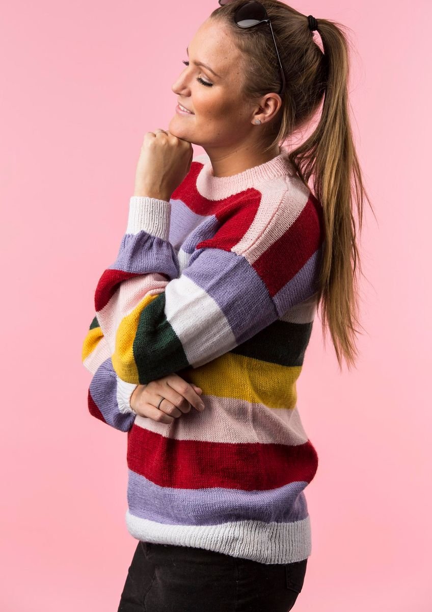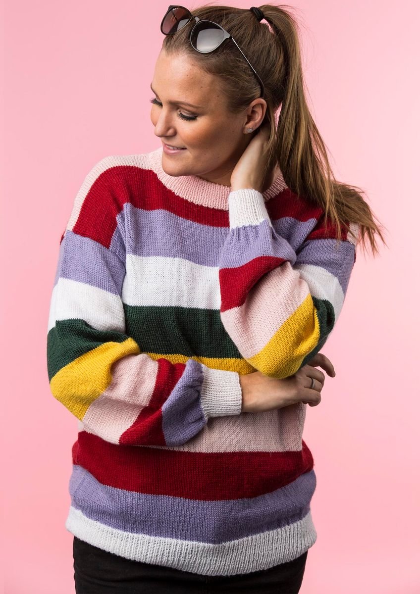 Striber er altid en nem og oplagt måde at give en bluse en unik personlighed, og derfor har vi heller ikke været bange for at eksperimentere med farverne på denne flotte stribede bluse. Vi har valgt vidt forskellige farver til striberne, og der er både komplementær- og kontrastfarve. Dette giver en ufatteligt flot effekt, som dog ikke bliver overvældende, da der er tale om forholdsvis brede striber og dermed færre farveskift.