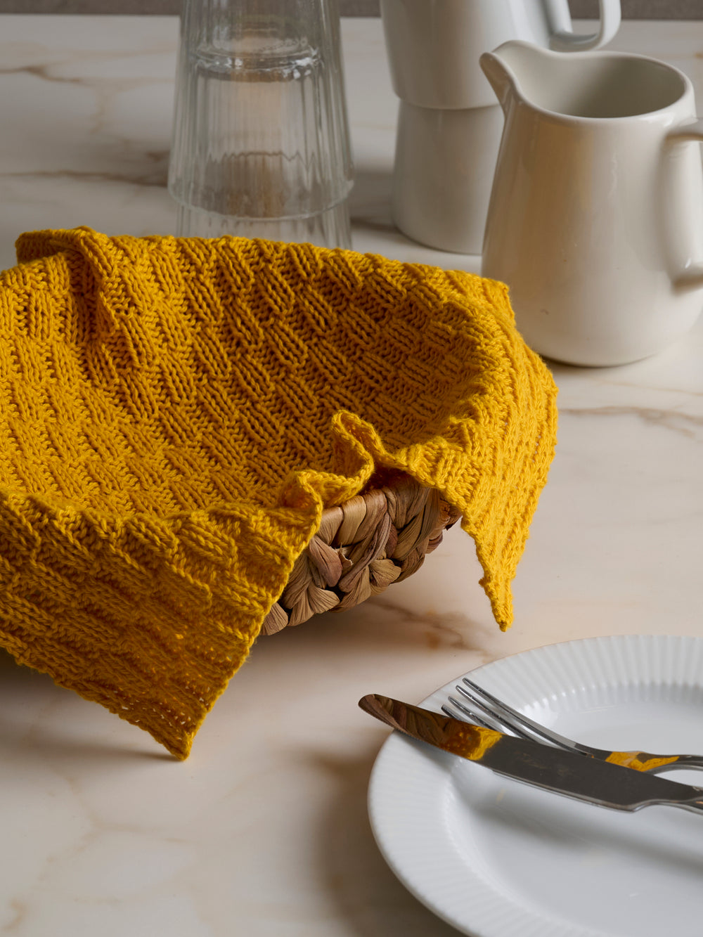 Strikket brødserviet Opskrift