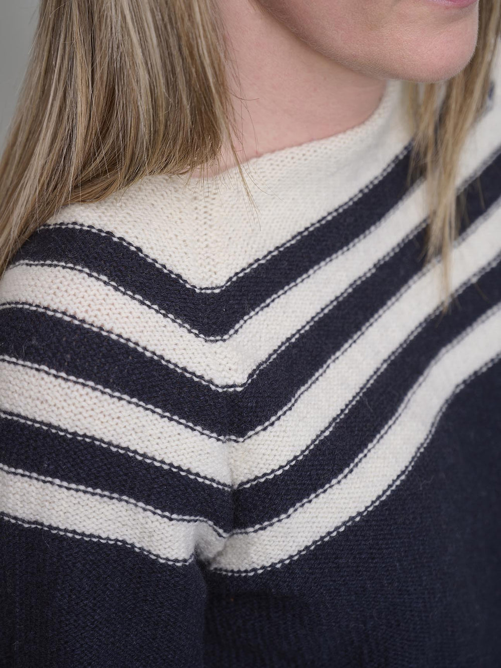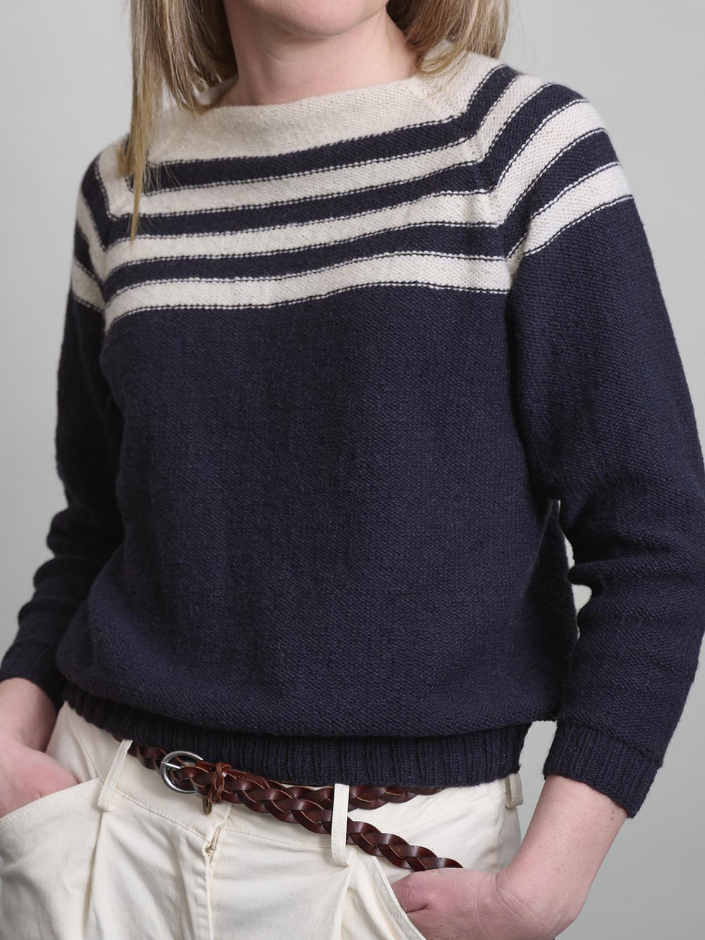 En klassisk og helt særlig sweater i den blødeste kashmiruld. Merle sweateren har en stilfuld, ombukket hals, striber i bærestykket og raglanærmer.