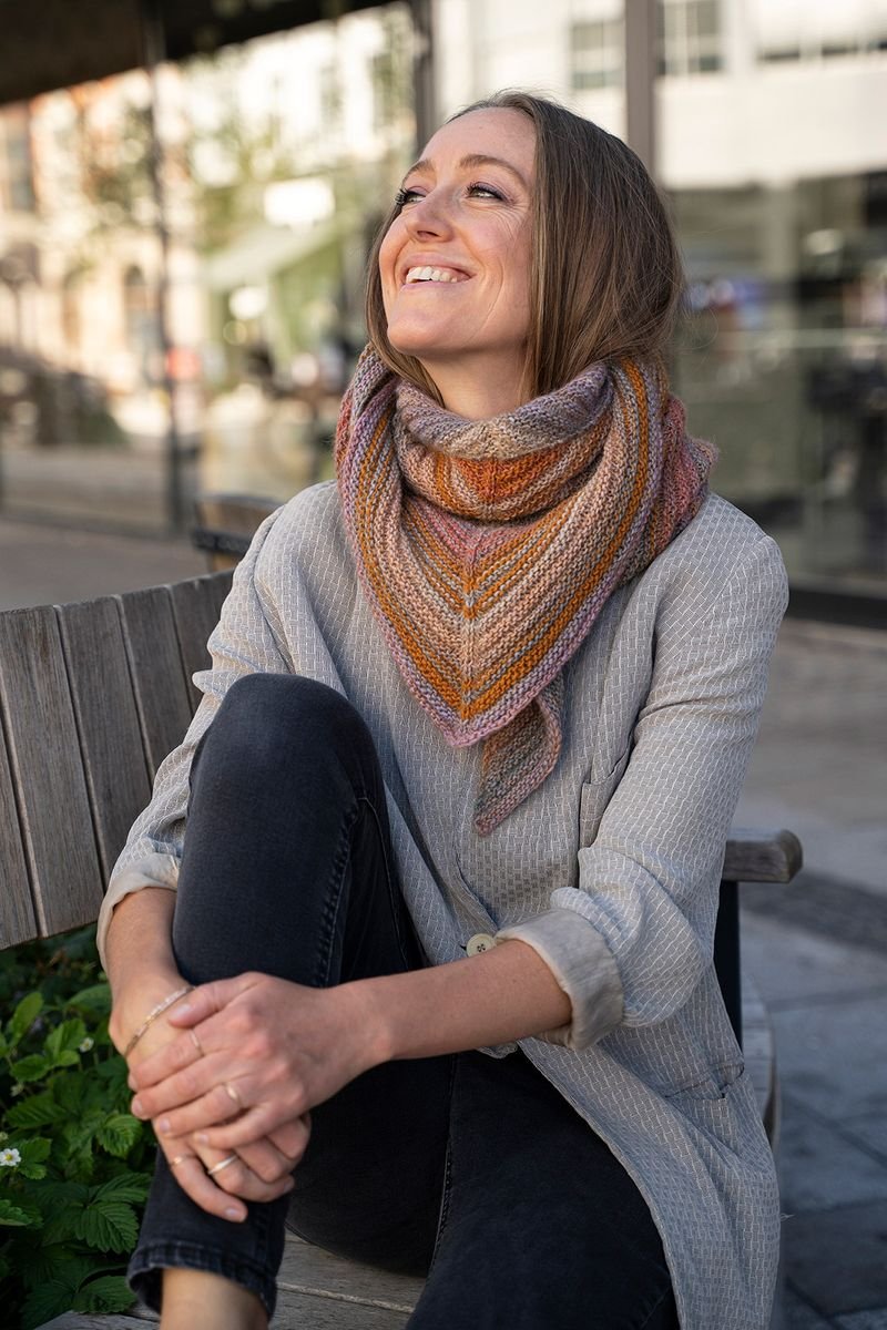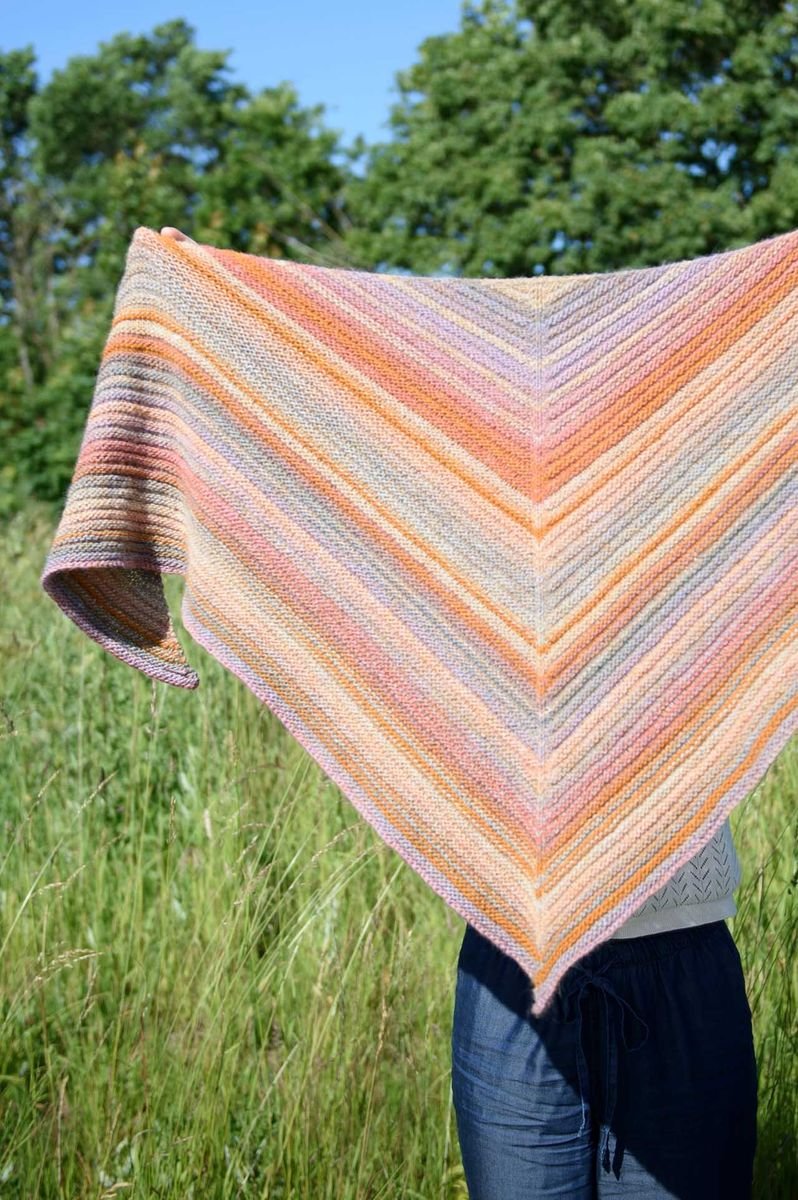 Virkelig let og luftigt sjal i et vidunderlig blødt og farverigt garn. Tagetes Sjalet får sin trekantede facon, da det strikkes fra midten og udad. Du starter derfor med ganske få masker på pinden og øger løbende maskeantallet på hver pind. Mønsteret med to pinde glat og to pinde glat vrang givet et flot og let voluminøst ribmønster. Mønsteret er nemt at gå til, hvilket også gør sjalet til et godt begynderprojekt.