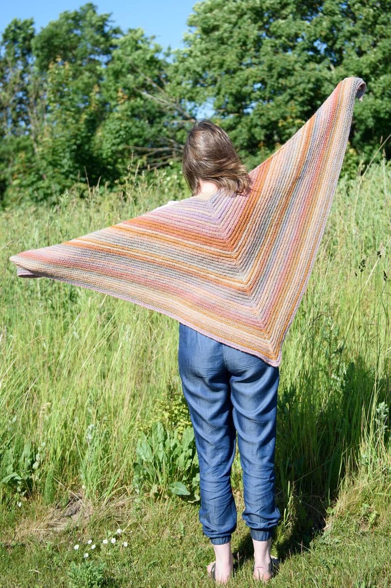 Det helt særlige ved sjalet kommer fra Taorminas fantastisk flotte farveskifte. Farverne i hvert nøgle er nøje udvalgt og fungerer godt sammen, og sjalet vil derfor indeholde elementer af mange forskellige farver, som passer til flere forskellige sæt tøj og anledninger. Det løbende farveskifte gør Tagetes Sjalet til et sjovt projekt at strikke, da det hele tiden ændrer farve og udtryk.