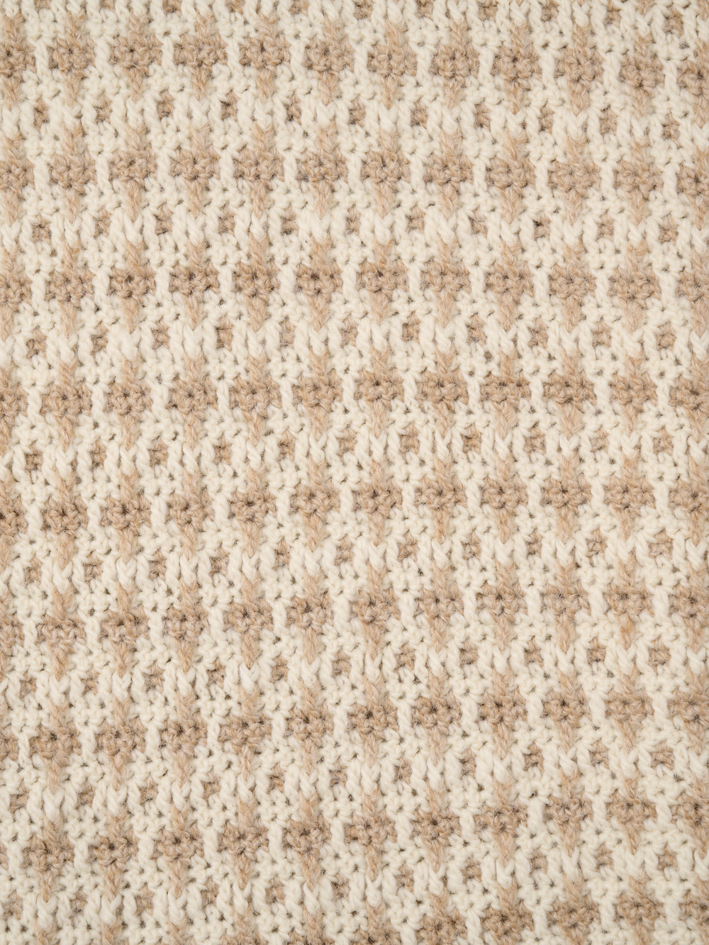Taormina plaiden eller tæppet er en dejligt, lunt tæppe med behagelig tyngde, som vil lune godt i sofaen eller brugt som sengetæppe. Tæppet hækles i et smukt og dekorativt mønster med mosaikhækling.