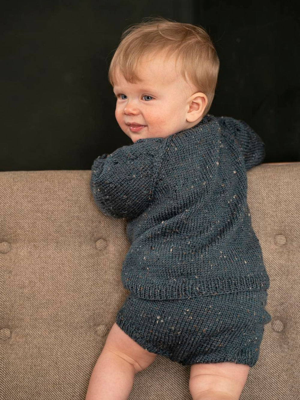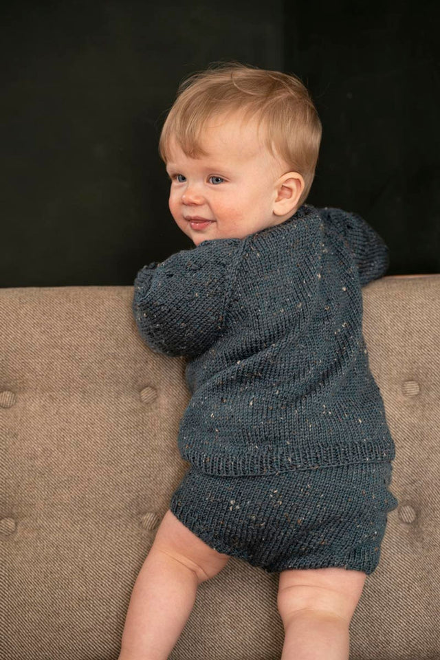 Den enkle buks skal strikkes i Mayflower Easy Care Classic Tweed, som er den mellemste garnkvalitet i uldserien Easy Care. Det uldne garn giver en blød, lun og åndbar buks, som er komfortabel for barnet og rar at bevæge sig i. Tweednisterne tilfører garnets farve ekstra liv og blødhed. Buksen kan også strikkes ensfarvet med Mayflower Easy Care Classic Tweed, som har samme strikkefasthed og løbelængde og ligeledes fås i rigtig flotte farver.