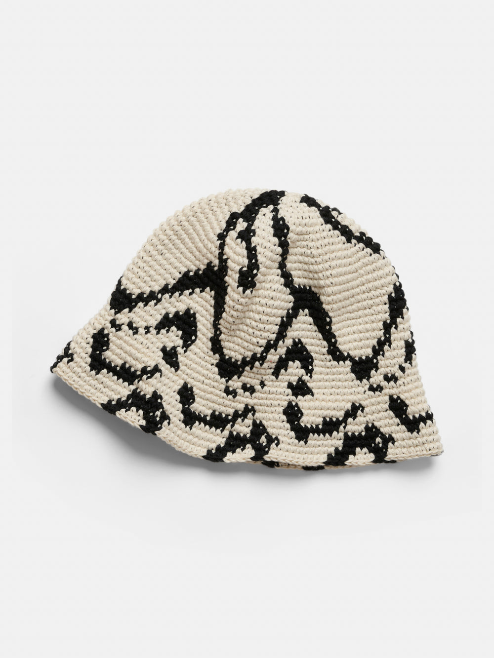 Den hvide sommerhat er hæklet i farverne 001 og 025.
