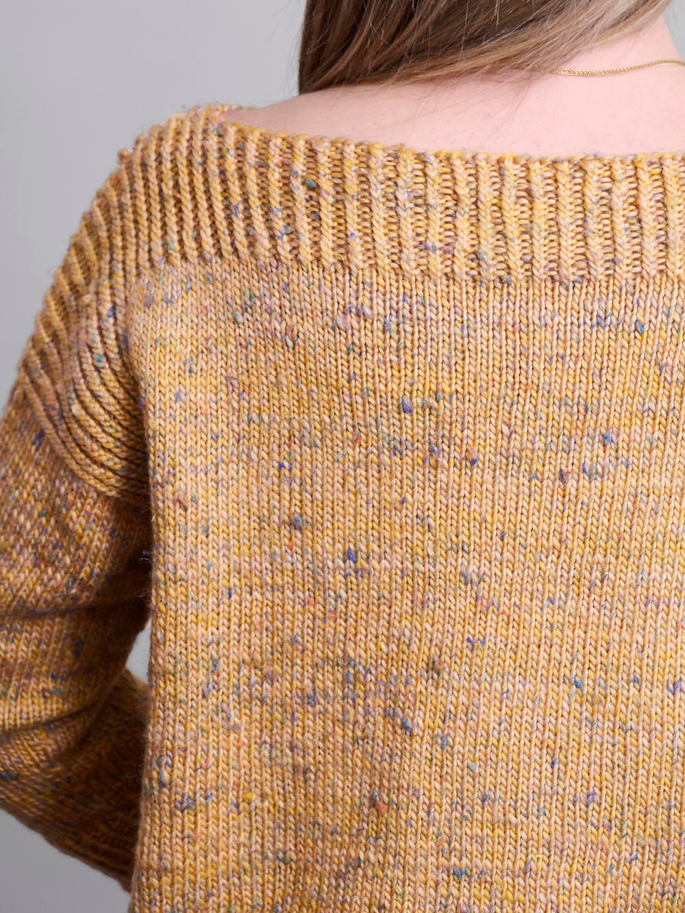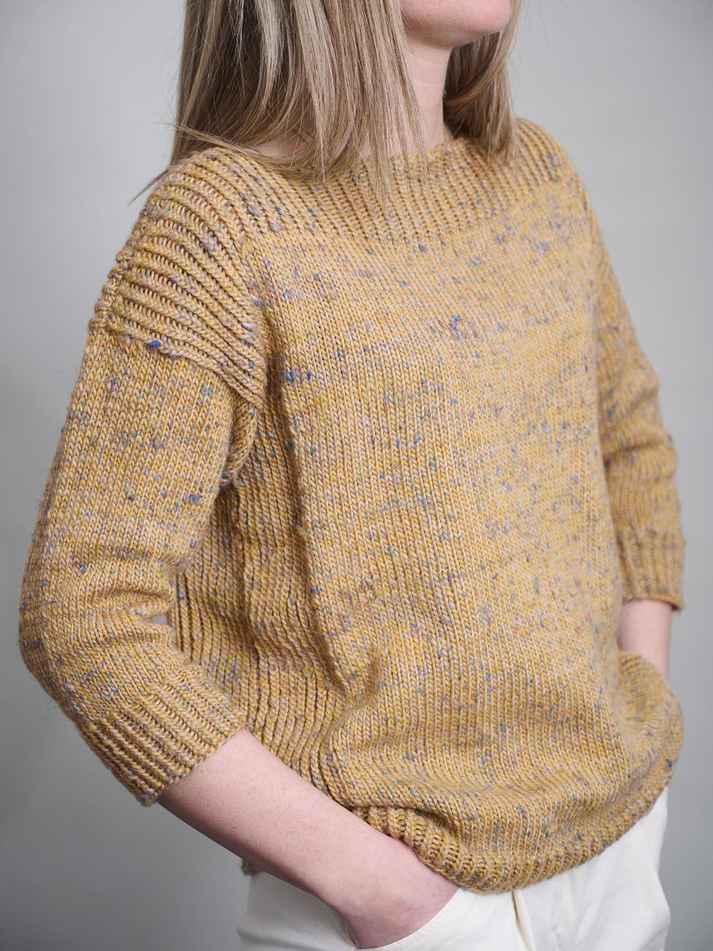 Enkel og stilfuld bluse med bådhals og 3/4 ærmer, som er simpel at strikke og derfor begyndervenlig.