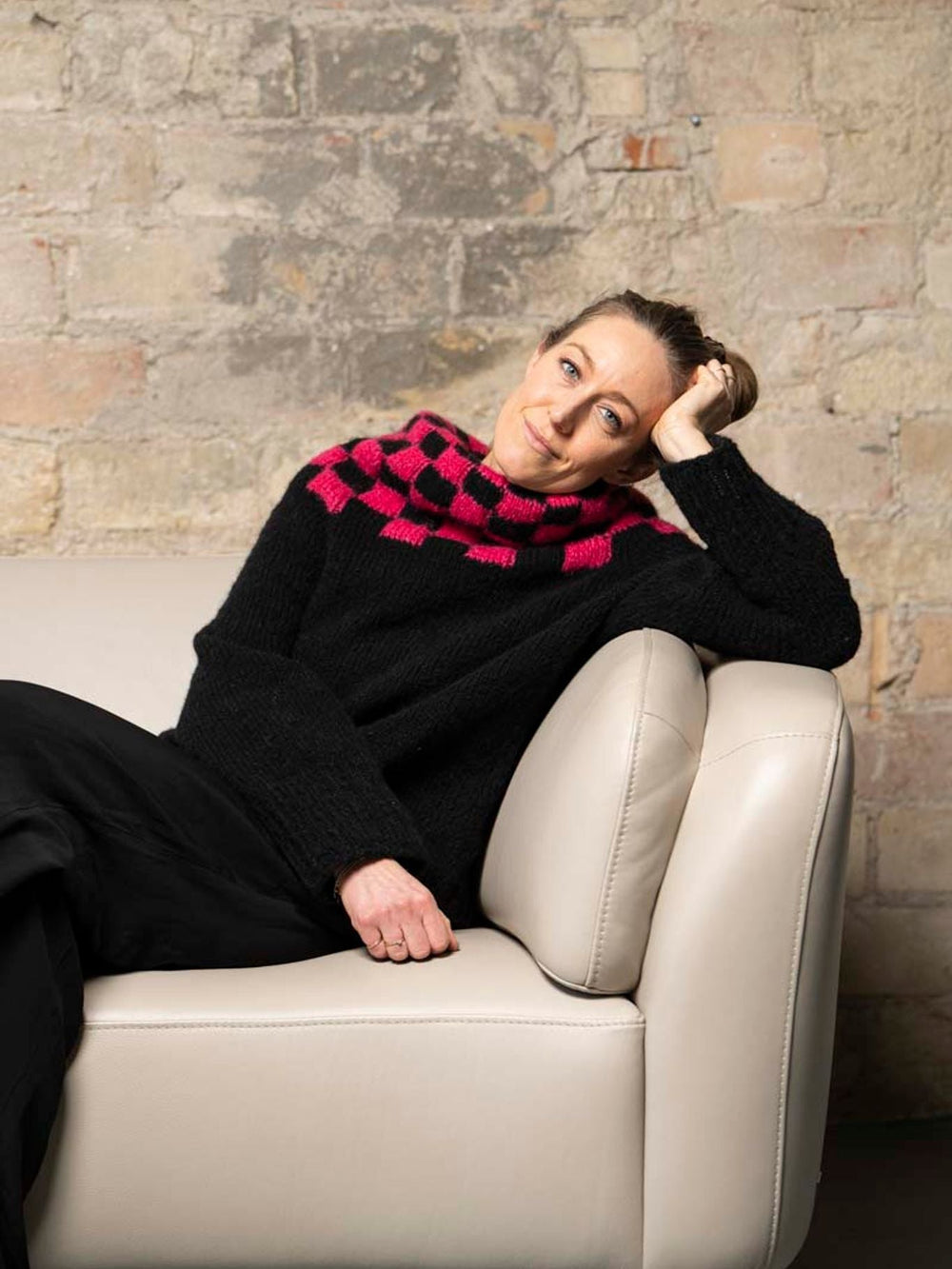 Valby sweateren har en bred og meget markant, ternet krave, som skiller sig ud og gør sweateren til helt sin egen. Du vil elske at putte dig i den bløde krave, hvor ternene går helt ned over skuldrene.
