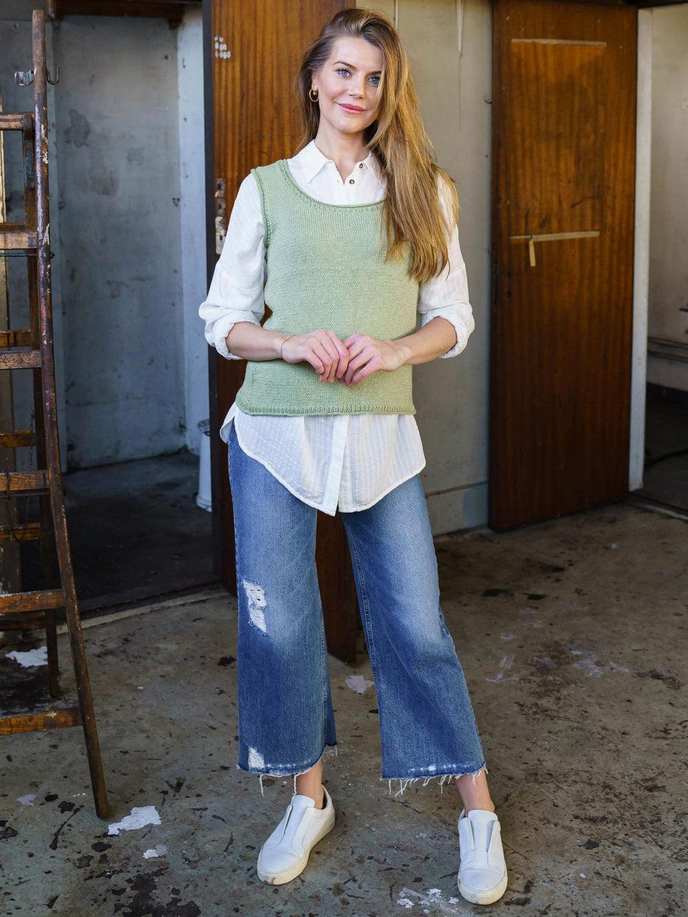 Vesten er strikket i det lækre Mayflower Cotton Merino, som består af 50% uld og 50% bomuld. Garnkvaliteten er perfekt til helårstøj, da bomuld og uld er to materialer, som fungerer fantastisk sammen. Bomuld er åndbart og hjælper med at transportere varme væk fra kroppen, mens ulden holder garnet luftigt og giver elasticitet samt varme.