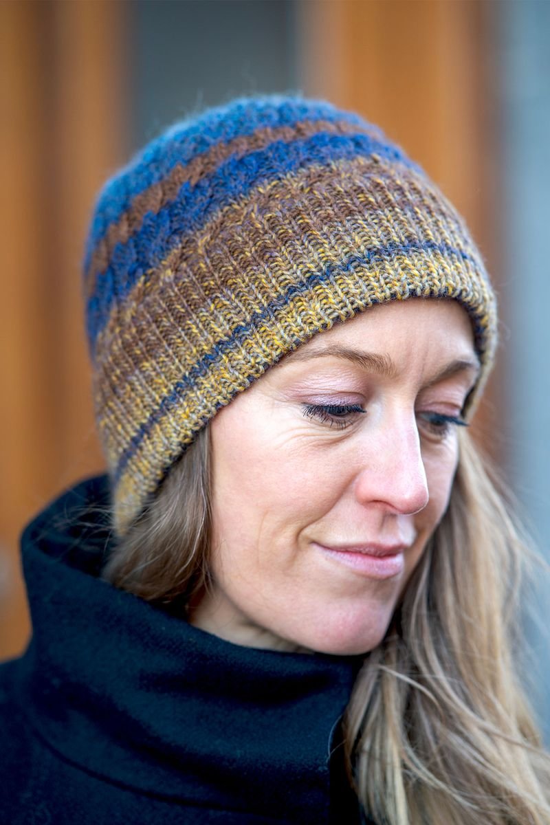 Huen har et flot og stribet farveudtryk, da den strikkes i Mayflower Taormina. Den bløde alpakablanding har én lang mønsterrapport i forskellige farver, som er nøje afstemt til hinanden. Garnet er derfor både virkelig blødt og utrolig smukt, da de skiftende farver giver et flot resultat. Alpakagarnet er lunt og blødt, og huen kan derfor nemt holde dig varm på kolde eller blæsende dage.