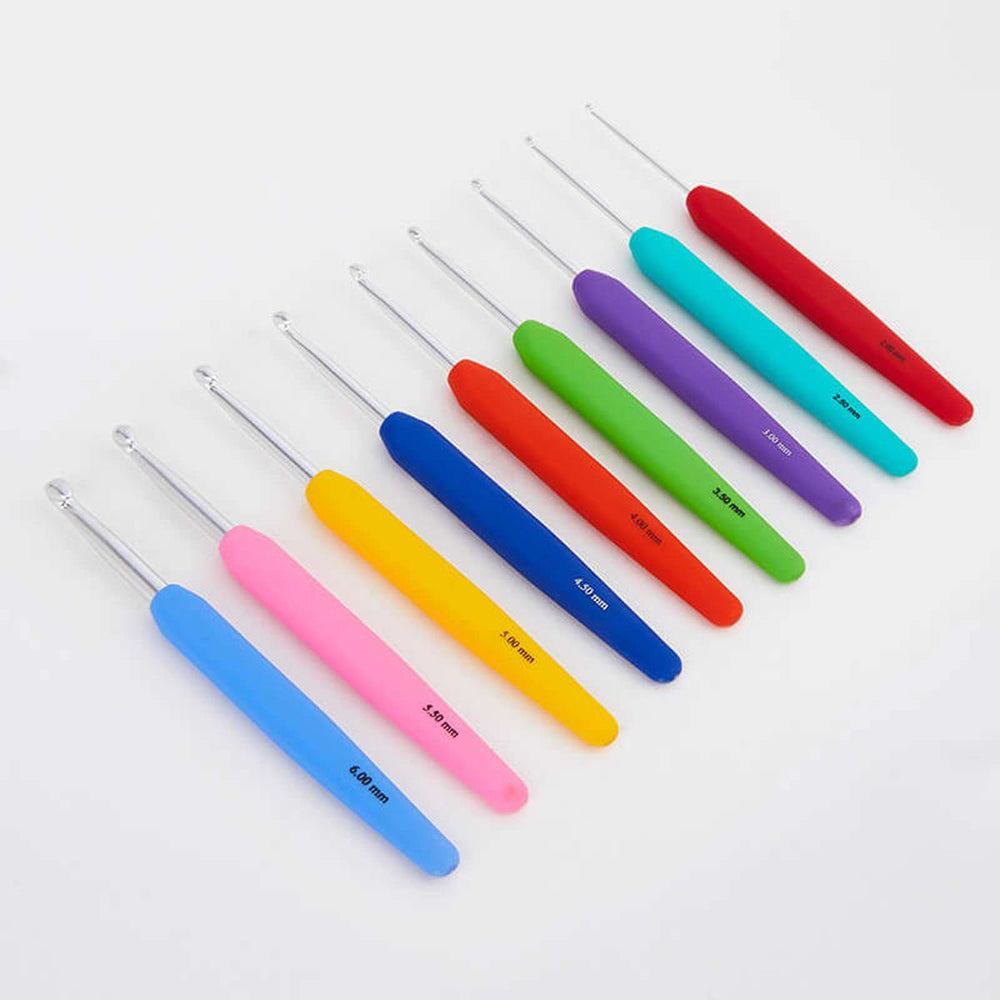Lækkert hæklenålesæt med hele 9 forskellige størrelser, som kommer i hver deres farve. Du kan derfor nemt se forskel på størrelserne og finde den nål, som du skal bruge til den enkelte opskrift. Hæklenålesættet er et godt arbejdsredskab for alle, der gerne vil hækle, og som foretrække metalpinde med gummigreb.